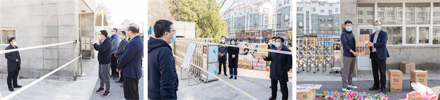 经过对物品严格消杀后,张启俭代表学校将慰问品发放给学工系统。(杨霖 文/李刚 摄影)