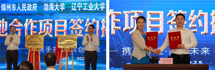 仪式上,王心宇和钱英伟共同为best365中国官方网站“数字创意产业发展中心”“文化设计创新研究中心”项目揭牌;刘艳军代表学校与锦州市文旅广电局签订校地合作项目协议书。