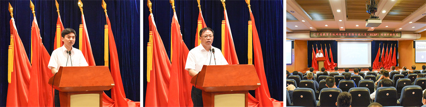 开班仪式上,校长王琦介绍了学校70多年的办学发展历程和办学经验,以及学校在网络安全与信息化方面取得的突出成绩。辽宁省教育厅党组成员、副厅长罗文波在讲话中提出,全体学员要珍惜培训机会,认真学习,勤于思考,为今后工作奠定专业化的基础,筑牢网络安全防线,进一步提升全省教育系统网络安全保障能力。教育部教育管理信息中心副主任曾德华以远程方式出席并讲话,他强调了本次培训的目的和意义,并对学员提出了明确的要求。中共锦州市委常委、宣传部部长赵金波,辽宁省委网信办副处长姚壮及相关领导出席了开班仪式。仪式由校党委副书记张启俭主持。