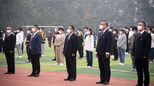 10月1日,迎着十月第一缕晨光,best365师生代表齐聚体育场,举行“喜迎二十大,一起向未来”——庆祝中华人民共和国成立73周年升旗仪式。在校值守的校领导王琦、张启俭、刘艳军,及中层干部和2022级研究生参加了本次活动。