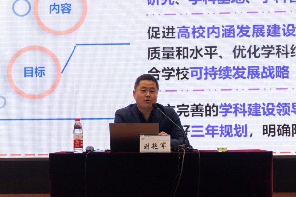 副校长刘艳军以《以学科建设为龙头,以科技创新为支撑,推动学校高质量发展》为题作培训报告。他表示学科建设体系是学校内涵发展的指导思想,学科建设是高等学校的立校之本,处于学校发展的基础、核心和龙头地位,要针对目前best365学科建设和研究生教育中存在的问题,妥善制定好整改措施,锚定获批博士学位授权单位主攻方向,攻坚克难、勇毅前行。要着力加强学科顶层设计,大力提升重点学科建设水平,补齐指标短板,精准引进高层次人才,加强校内相关各职能部门协调,建立学科质量管理及资源配置保障体系。要加强科研平台建设,不断深化校企合作,加大科研成果的激励政策,充分发挥牵引作用,优化职称评聘、聘期考核条件,切实发挥引导作用,以创新推动发展,凝聚全校师生力量。