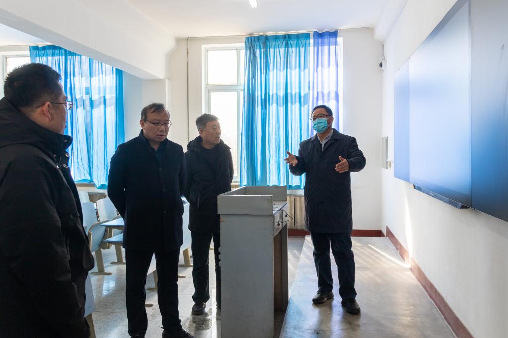 2月25日,党委副书记、校长王琦,党委副书记张启俭、副校长张广安带领相关部门负责人深入校门、教学楼、学生公寓、健康驿站、食堂等区域,对学习生活环境改造升级、防疫场所建设及物资储备、校园安全管理与条件保障等工作落实情况进行专项检查指导。