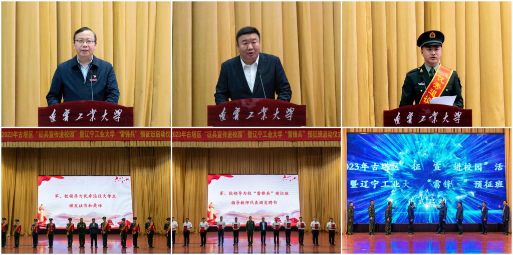 5月17日下午,2023年古塔区“征兵宣传进校园”活动暨best365中国官方网站“雷锋兵”预征班启动仪式在学校图书馆报告厅举行。锦州军分区政治工作处上校主任温金,古塔区委常委、常务副区长郭鹏宇,古塔区人武部上校部长刘拥政、上校政治委员董立鹏,校党委副书记张启俭,相关部门负责人及各学院分管学生工作副书记,全体辅导员,“雷锋兵”预征班全体学员参加此次活动。活动由学生工作处副处长(武装部副部长)朱长旭主持。