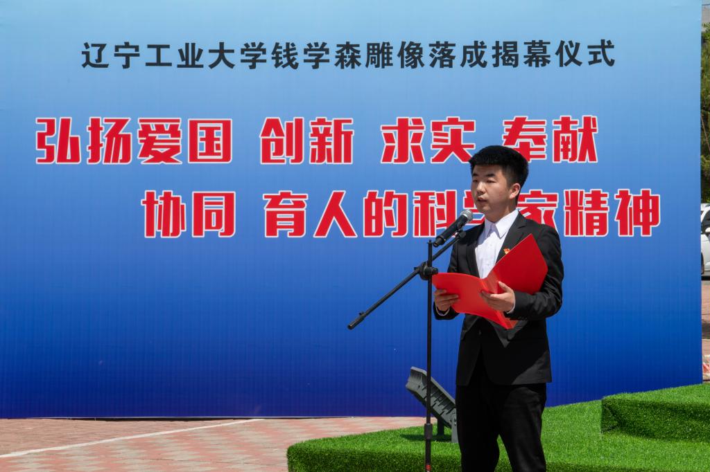 党委副书记、校长王琦在致辞中指出,今年是钱学森先生诞辰112周年,钱学森先生的一生,立志、求学、归国、奉献,为广大的科技工作者、教育工作者、莘莘学子树立了光辉的典范!这也与学校的建校初心、办学定位、培养目标、校训精神高度契合,值得我们终身学习、终身践行。雕像所处的位置正是辽沈战役配水池战斗遗址——82.61高地附近。我们在这里树立钱学森雕像,就是要传承锦州这座英雄城市的红色基因,弘扬辽沈战役配水池战斗的攻坚克难精神,继承和发扬钱学森先生等老一辈科学家胸怀祖国、服务人民的优秀品质和严谨的科学态度、缜密的创新思维、系统的工程观。大力弘扬“爱国、创新、求实、奉献、协同、育人”的科学家精神,以及牢记初心使命,永葆奋斗精神的强大力量,在锦州乃至辽宁树立科学高峰、工程与技术研究高地。他强调,全校师生要以钱学森先生为榜样,为师为学,将爱国之心、强国之愿,报国之志、效国之行融入中国式现代化建设新征程,融入服务辽宁全面振兴新突破三年行动之中,为建设特色鲜明的高水平应用型大学再建新功。