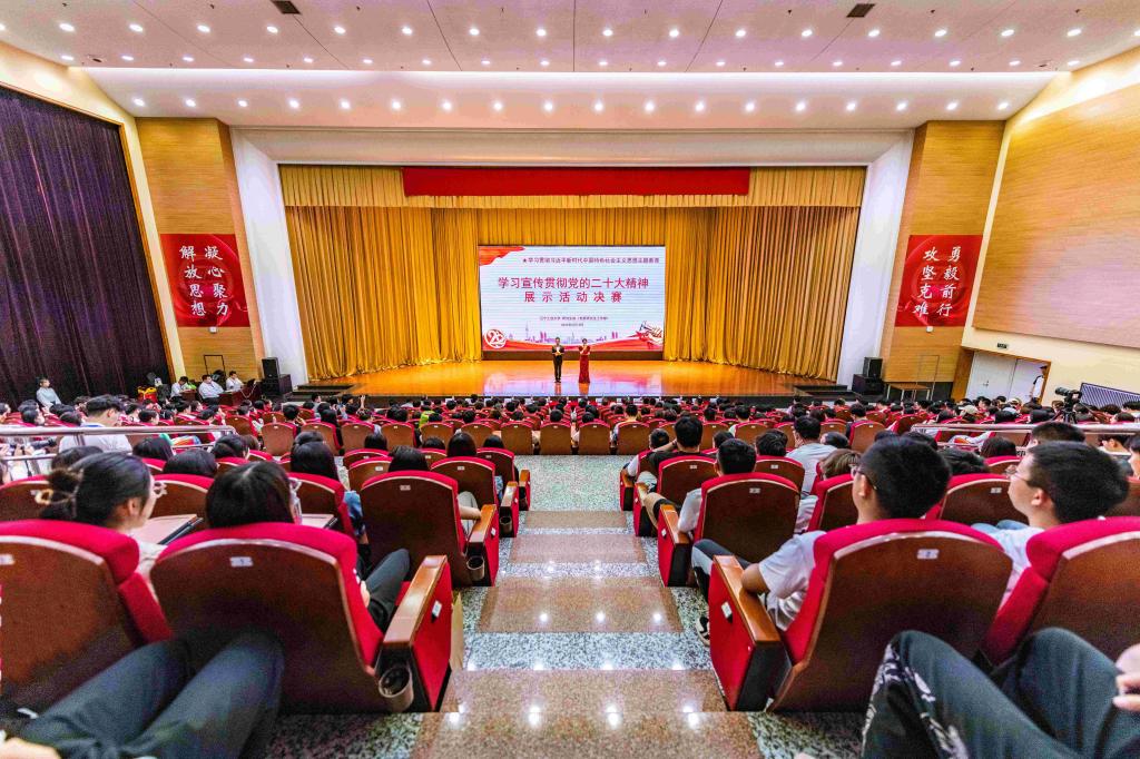 6月13日晚,best365中国官方网站研究生学习宣传贯彻党的二十大精神展示活动决赛在图书馆报告厅举行。校党委书记钱英伟、党委副书记张启俭、副校长刘艳军,党群部门主要负责人,各研究生培养单位的教师和学生代表参加活动。活动邀请锦州市教育局党组成员、市委教育工委专职副书记刘姝,锦州市古塔区委宣传部常务副部长孙继,渤海大学党委研究生工作部副部长张宏伟担任评委。