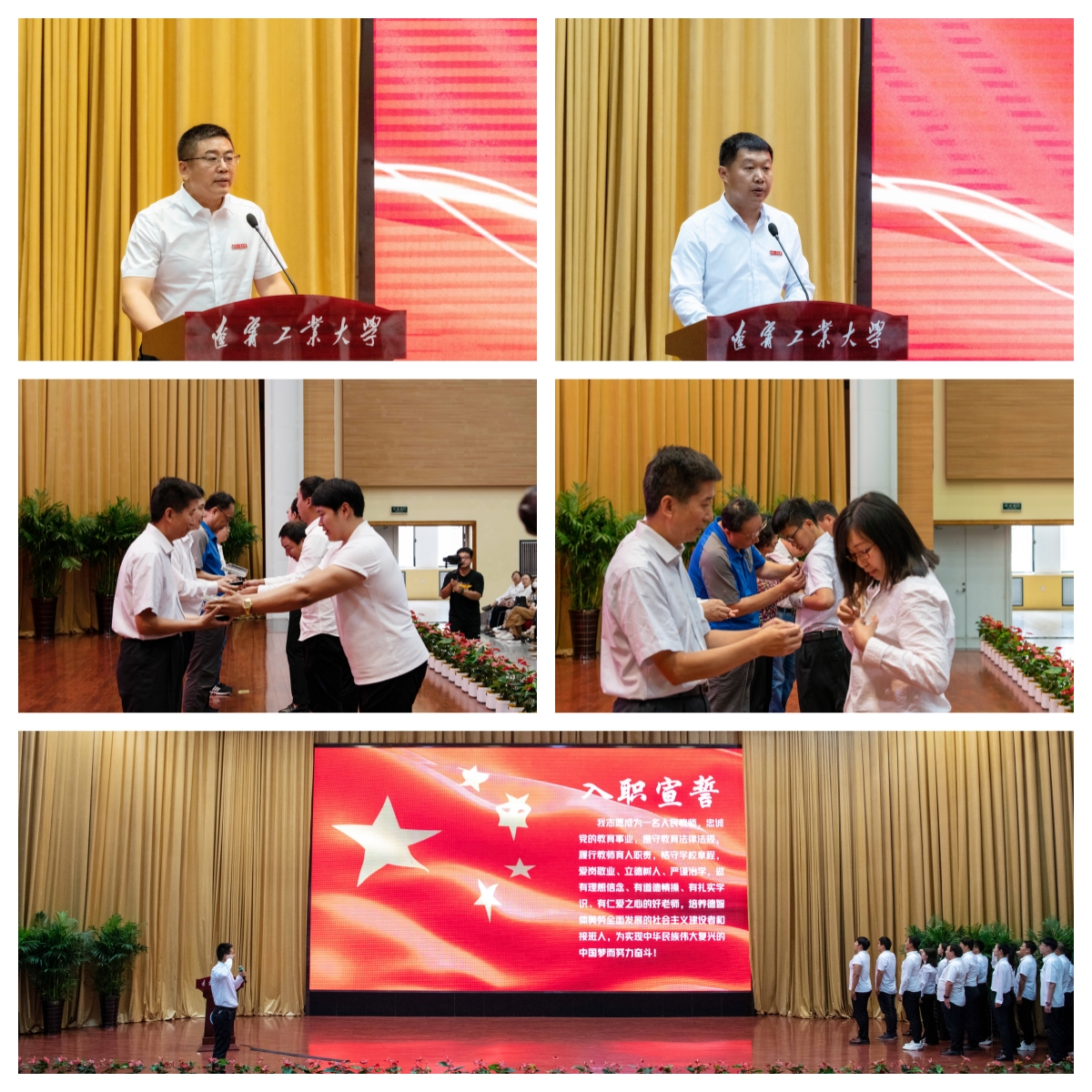 大会表彰了 “2022年辽宁省普通高等学校本科教学名师”、辽宁省“优秀教师”、best365中国官方网站“三全育人”先进集体、“三全育人”标兵提名、“三全育人”标兵、本科教学标兵及“三全育人”先进个人。辽宁省本科教学名师关维国和校“三全育人”标兵朱长旭先后发言。师道传承仪式上,新入职教师代表向退休教师代表赠送学校荣休纪念品,感谢他们“尽丹心育桃李、洒青春谋发展”的辛勤付出;退休教师代表为今年新入职教师代表佩戴校徽,希望新入职教师秉承砺器悟道校训精神,继承和发扬“勤学进取、严谨求实”的校风,在本职岗位上涵养高尚师德,潜心铸魂育人,争做新时代的好老师。在理学院李元新教授的带领下,全体新教师面向国旗进行庄重宣誓。