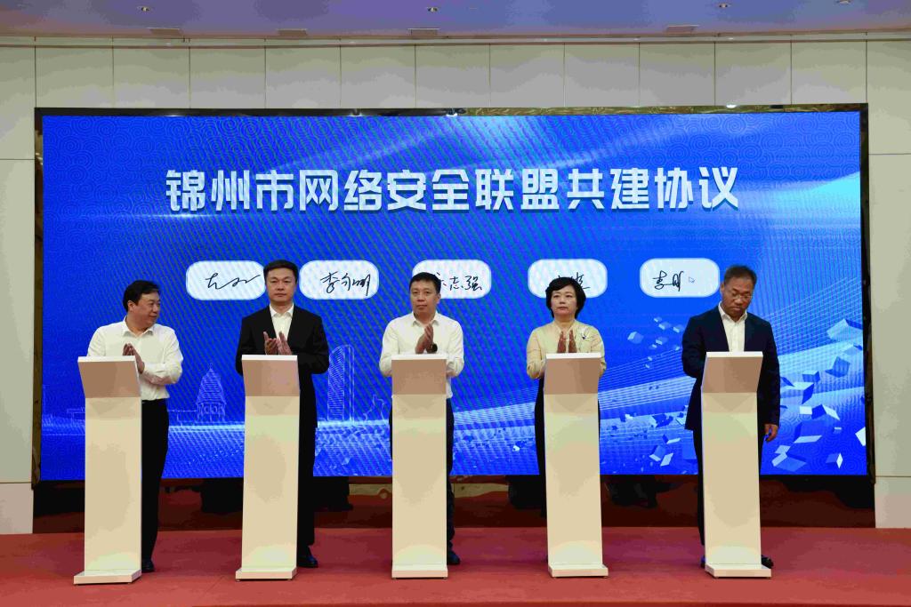 李永明代表学校与锦州市大数据管理中心、古塔区人民政府签署“锦州市网络安全联盟共建协议”。该协议的签署标志着best365服务县区主导产业高质量发展、推动构建新型产业联盟进入新阶段。