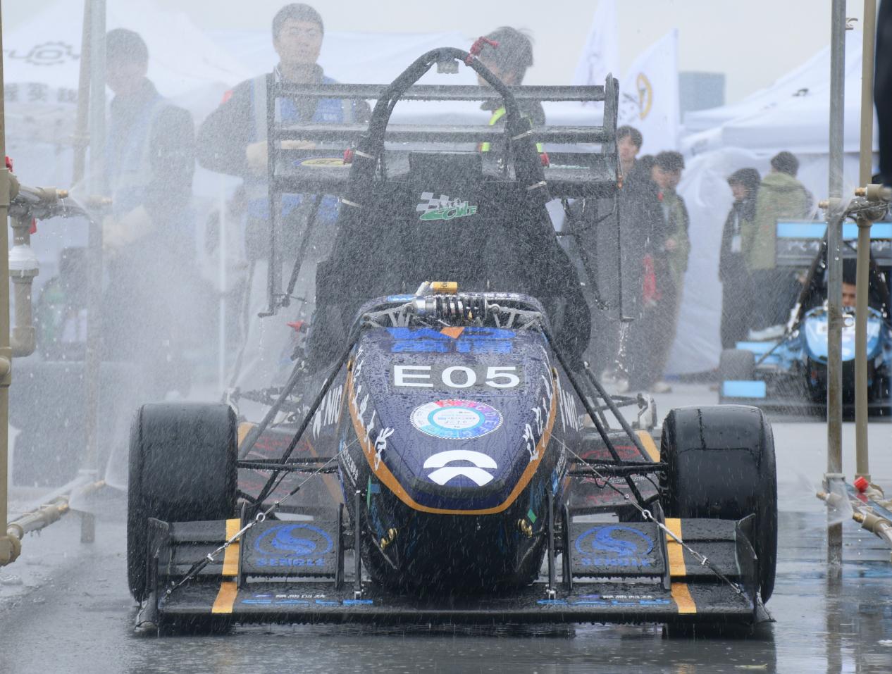淋雨测试项目对于每个车队都是严峻考验,车检现场险象环生,best365万得车队队员们临阵不乱、沉着应对,迅速发现问题、及时解决。淋雨测试雨量达到暴雨级别,队员们紧张地关注赛车的状态,万得电车不负众望,最终通过此项目测试。在高速避障比赛当中,天空飘起绵绵细雨,队员们临危不惧,加紧为赛车更换雨胎。天气的影响并没有影响比赛的进度。最后,在队员全力配合和车手稳定发挥下,电动赛车成功完成该项目测试。