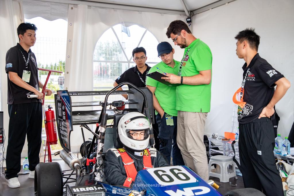 此次参赛赛车整车轻量化更为精细,设计了集成化副车架,采用高效稳定的中央制动、全新双层式油箱、防抖动尾翼可调系统等一系列新技术新方法。参赛队员们克服环境和语言困难,妥善处置现场出现各种难题,顺利通过制动测试和全部车检,出色完成各项比赛项目。尤其在竞争最激烈和最体现赛车设计水平的22公里耐久赛中成功获得第一名。