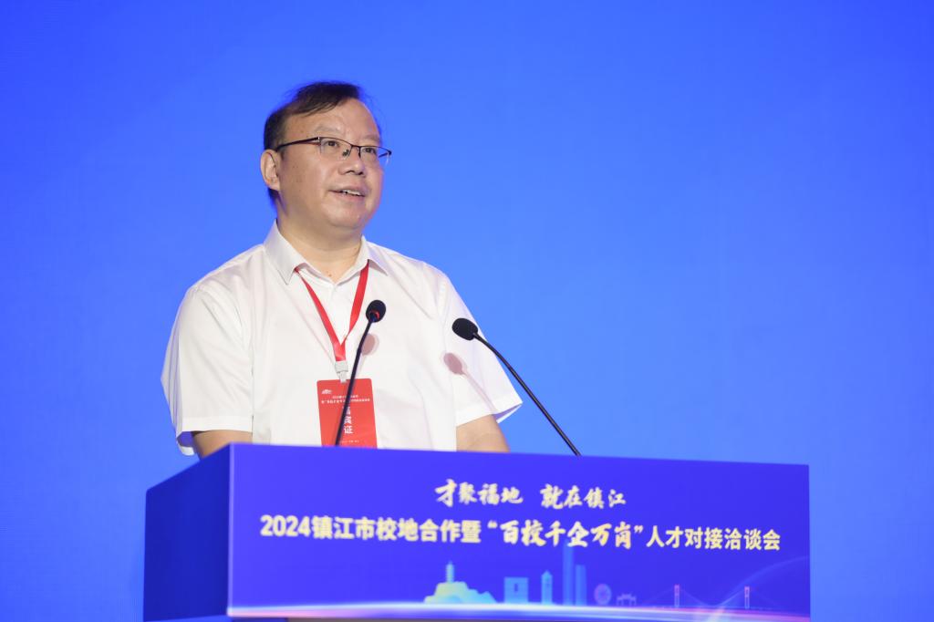 在镇江市第二届镇江金山英才周、校地合作暨“百校千企万岗”人才对接洽谈会上,张启俭代表参会高校致辞。他对学校的发展历程、办学特色、人才培养以及服务地方社会发展等方面取得的重要成果进行了介绍,表达了与镇江市及企业深化合作、携手并进的美好期待。