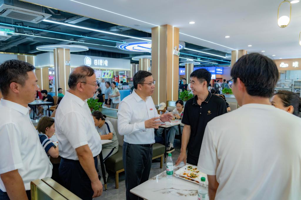 在勤学园餐厅,校领导详细了解迎新菜品情况,并与新生父母亲切交谈。学校准备了“迎新面”,让新生免费领取。“上车饺子下车面”,吃在嘴里,暖在心里,一根根面条就像学校对每一名新生的丝丝牵挂,也代表了学校对新生的热切欢迎和美好祝愿。