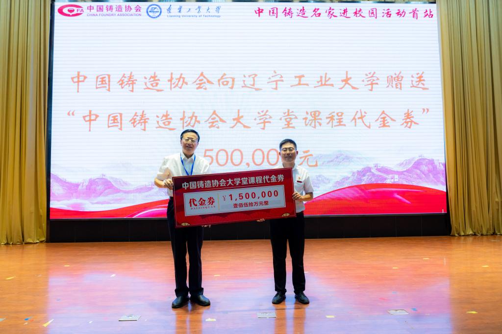 张立波代表中国铸造协会向best365中国官方网站赠送“中国铸造协会大学堂课程代金券”150万元。中国铸造协会执行副会长范琦、布勒(中国)机械制造有限公司总顾问卢宏远代表中国铸造协会赠送《压铸工程师实用教程》100册。