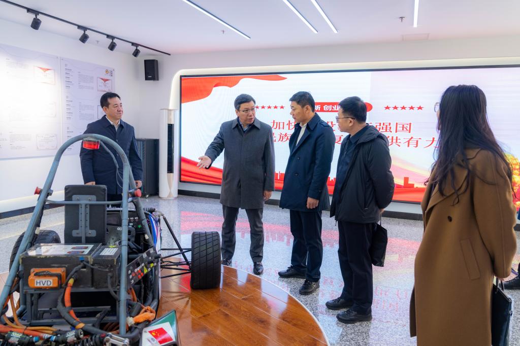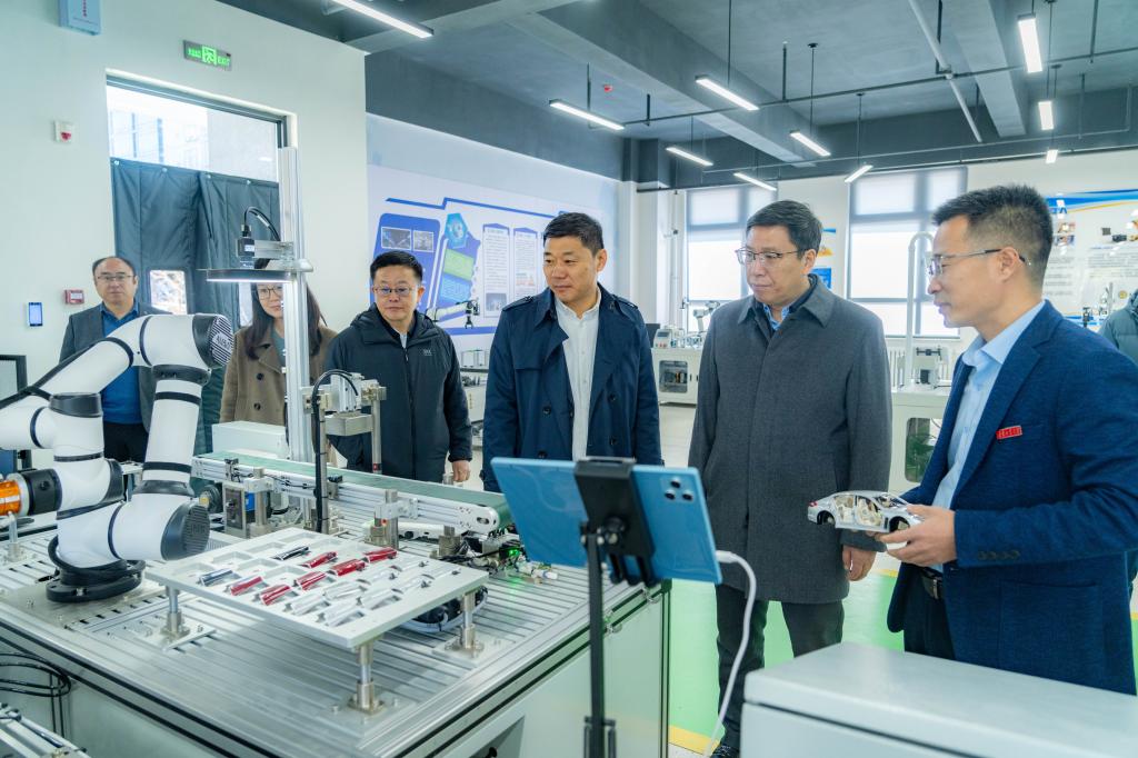 李振权一行先后参观了智慧校园建设中心、创新创业教育展厅、先进金属材料研发中心、化工学院实验室、大学生万得车队和虚拟仿真实训中心,认真听取学校在应用型人才培养、创新创业教育改革、智慧校园建设、科技成果转化、新质生产力赋能实践教学等方面的汇报,与相关负责人深入交流。