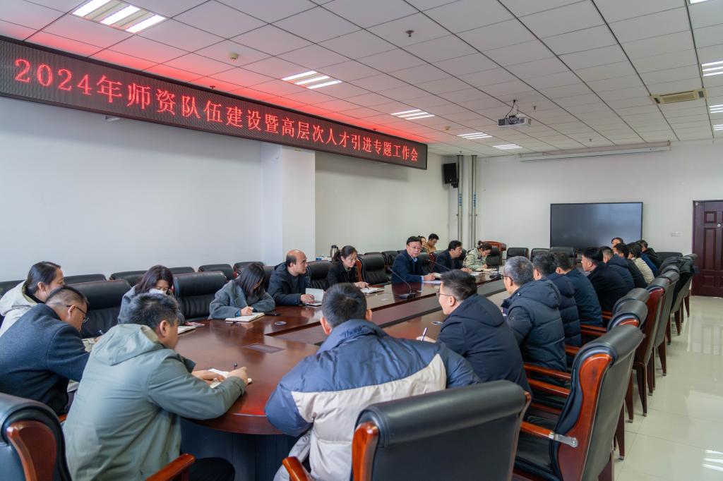 11月28日,学校召开2024年师资队伍建设暨高层次人才引进专题工作会。校党委副书记、校长张启俭,人事处、教师发展中心相关负责人和各教学单位党政负责人参加会议。