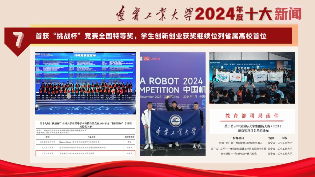 2024年是中华人民共和国成立75周年,是全面振兴新突破三年行动的攻坚之年,是学校实现“十四五”发展规划目标的关键之年。这一年,在学校党委的坚强领导下,全校师生踔厉奋发、勇毅前行,奋力书写加快建设教育强国、人才强国、科技强国的辽工大答卷!