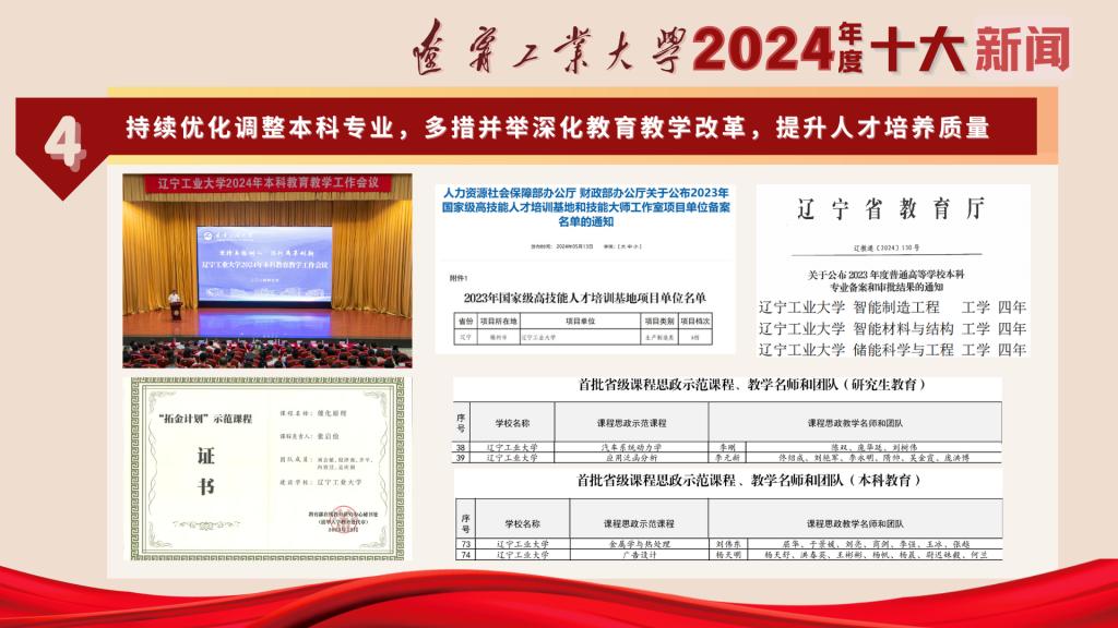 延伸阅读:2024年,全校上下坚持以习近平新时代中国特色社会主义思想凝心铸魂,认真学习贯彻习近平总书记重要讲话和重要指示批示精神,全面贯彻落实党的二十届三中全会精神、全国教育大会精神,聚焦“135111”发展战略,深化教育、科技、人才体制机制一体改革,服务辽宁全面振兴,制定《best365中国官方网站学习宣传贯彻党的二十届三中全会精神工作方案》《关于推动best365中国官方网站高质量发展的实施意见》等,加快建设特色鲜明的高水平应用型大学,努力作出推进中国式现代化的辽工大贡献。