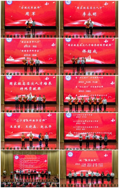 大会表彰了全国优秀教师、国家级高层次人才、国家级青年人才、强国青年科学家、高层次人才培养特殊贡献奖、省“兴辽英才计划”领军人才、省“兴辽英才计划”教学名师、省“兴辽英才计划”青年拔尖人才、辽宁省本科教学名师以及各类省级教学科研竞赛获奖和校级“教学标兵”。