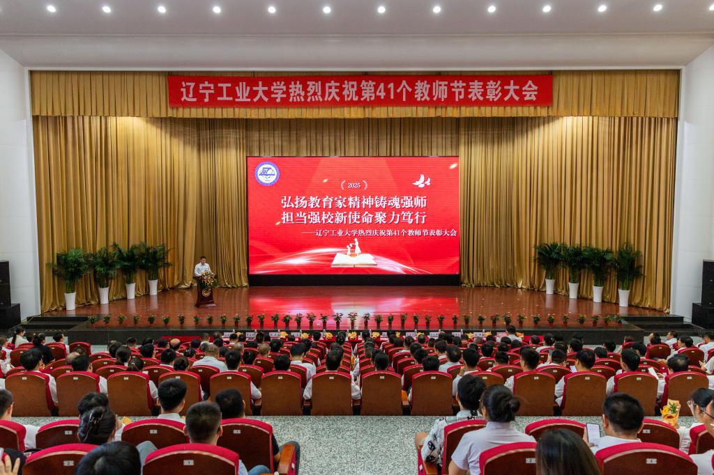 9月10日,学校在图书馆报告厅举行庆祝第41个教师节表彰大会,大会主题为“弘扬教育家精神铸魂强师 担当强校新使命聚力笃行”。锦州市委常委、组织部部长陈凯,校党委书记钱英伟,党委副书记、校长张启俭,原党委副书记、校长佟绍成以及其他学校领导班子成员、职能部门负责人、教学单位班子成员、高层次人才代表、获奖教师代表、荣休教师代表、新入职教师及学生代表出席大会。大会由校党委副书记刘艳军主持。