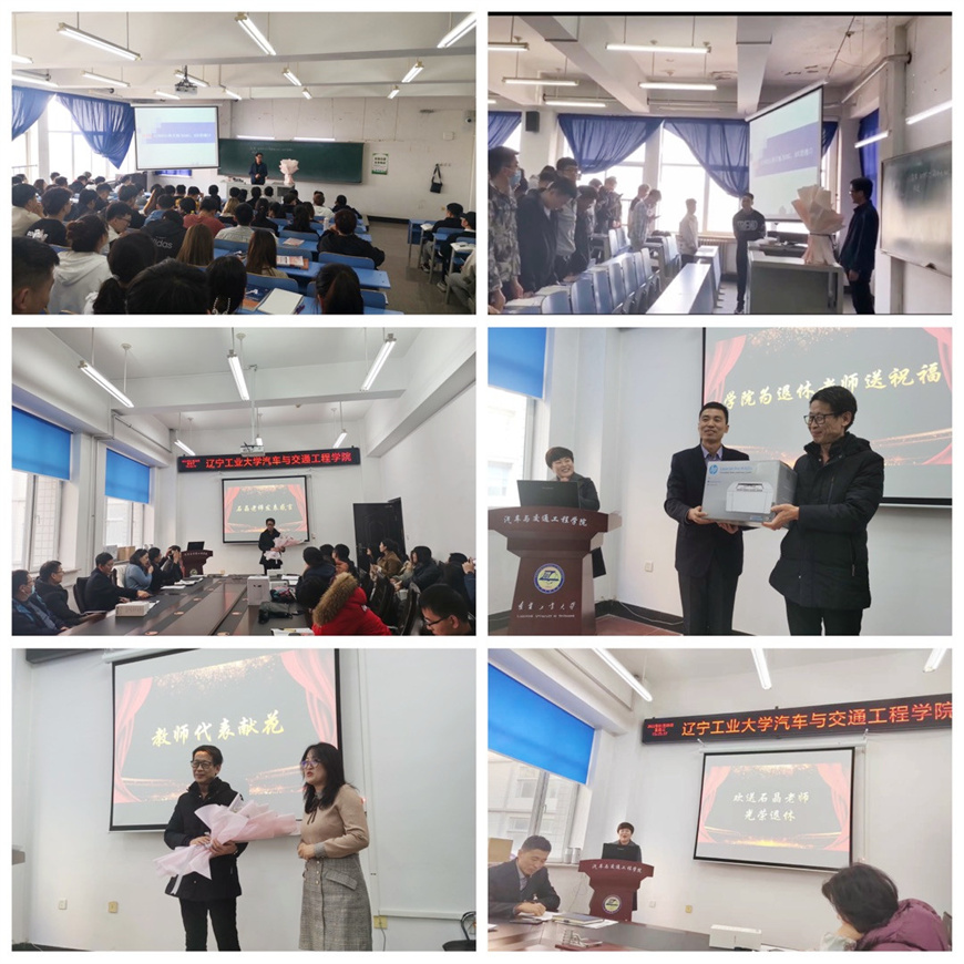 刘峰首先介绍了石晶老师的工作简历以及在教学科研等方面取得的奖励荣誉,随后播放了学院精心制作的“杏坛风华,岁月流金”视频,一起回首石晶老师工作战斗过的日子。教师代表魏丹向恩师石晶敬献鲜花并表达深深的祝福。石晶老师回顾了他在辽工大汽车学院工作的时光,他深情地说到:“辽工大,培育了我,汽车学院就是我的另一个家。”最后他表示,虽然他不在工作岗位上了,但定会心系汽车学院、时刻关注学校发展,祝愿学校和学院明天会更好。