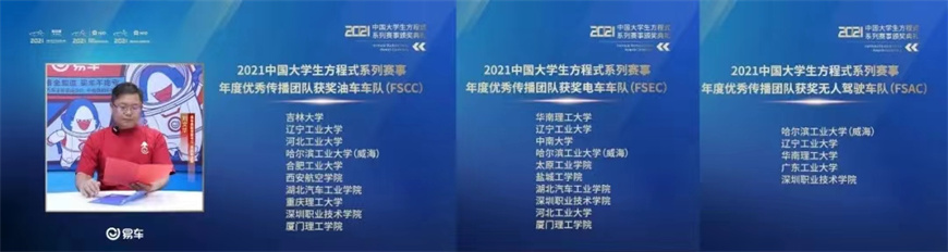 6月19日,2021赛季中国大学生方程式系列赛事公布最后成绩,best365万得车队油车队、电车队、无人驾驶车队成绩优异。万得电车队获总成绩全国一等奖,油车队和无人驾驶车队获全国二等奖。单项奖中,电车队获得MATLAB/Simlink控制策略开发及软件实现赛第一名,成本报告比赛中首次进入决赛,并获得单项赛第二名;无人驾驶车队获MATLAB/Simlink车辆动力学仿真赛二等奖;三支车队均获年度优秀传播团队奖。2021年虽然受疫情多次影响,车队队员克服各种困难,最终完成了2021赛季赛车的研发,如期举行了新车发布会和车队十周年庆典,为学校70年校庆献礼。在线上赛准备过程中,车队队员秉承“砺器悟道”校训和“万得车队,万分努力”精神,克服困难、精心筹划、反复练习,不断总结和完善,提升了车队的整体实力,在线上赛中的表现突出。