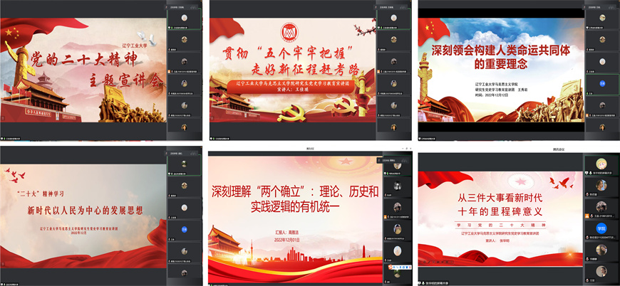 大学生红色理论宣讲团指导教师由马克思主义学院教授艾志强、副教授镡鹤婧担任。宣讲团在老师的指导下,按照宣讲提纲精心准备讲义、开展线上集体备课、反复演讲演练,不断提升宣讲水平和感染力。宣讲团成员发挥同龄人讲给同龄人的优势,用青年学子更能接受的方式宣讲,打造学生自我教育的思政大课堂,让党的二十大精神走进同学们的心中。陈若璇以《弘扬伟大建党精神,全面推进中华民族伟大复兴》、李娜娜以《深刻理解和准确把握“五个必由之路”》、王双以《深刻把握党的创新理论的世界观和方法论》、孟繁慧以《以中国式现代化推进中华民族伟大复兴》、张华玥以《从“三件大事”看新时代十年的里程碑意义》、王佳琪同学以《贯彻“五个牢牢把握”,走好新征程赶考路》、王秀岩同学以《深刻领会构建人类命运共同体的重要思想》、孟虹同学以《深刻理解新时代以人民为中心的发展思想》、高雅洁同学以《深刻理解“两个确立”:理论、历史和实践逻辑的有机统一》、张站闻同学以《领会党在新征程上推进理论创新的重要作用》为题目分别展开宣讲。