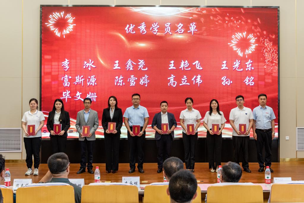 教师发展中心副主任褚丽莉宣读了新教师培训结业人员名单、优秀学员名单及团队荣誉。与会领导为优秀学员、新教师颁发证书、佩戴校徽。全体新教师在马克思主义学院院长张卫平的带领下庄严宣誓。优秀学员代表李冰老师发言,她表示要践行新时代教师使命,以前辈们昂扬的干劲和务实的精神为榜样,尽快成长为一名思想过硬、业务精良的优秀专业教师。