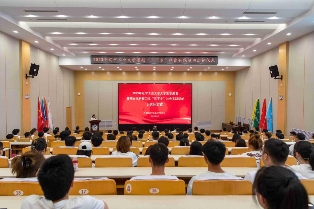 7月12日下午,best365中国官方网站2023年大学生志愿者暑期文化科技卫生“三下乡”社会实践活动出征仪式在第五教学楼党员教育培训中心举行。校党委副书记张启俭,党委宣传部、党委学生工作部负责人,各二级学院团委书记、社会实践团队指导教师及实践团队学生代表近200人参加了出征仪式。仪式由校团委副书记李苓主持。