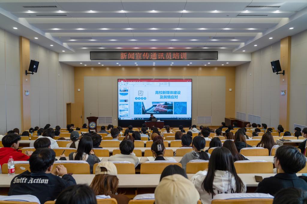 4月13日,党委宣传部在第五教学楼党员教育培训中心开展全校新闻宣传通讯员培训。全校教职工通讯员,各学院和校级学生组织负责宣传工作的学生干部参加了培训,培训由党委宣传部副部长李文君主持。