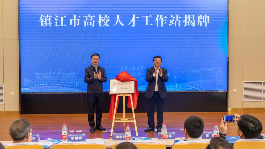 李永明和胡宗元共同为“镇江市高校人才工作站”揭牌。镇江市人社局二级调研员吴志龙为best365两位镇江籍学生代表颁发“归雁”引才使者聘书,党委学生工作部部长张钦华、招生就业处副处长孟超代表学校为3家单位颁授“best365中国官方网站就业实习基地”牌匾。