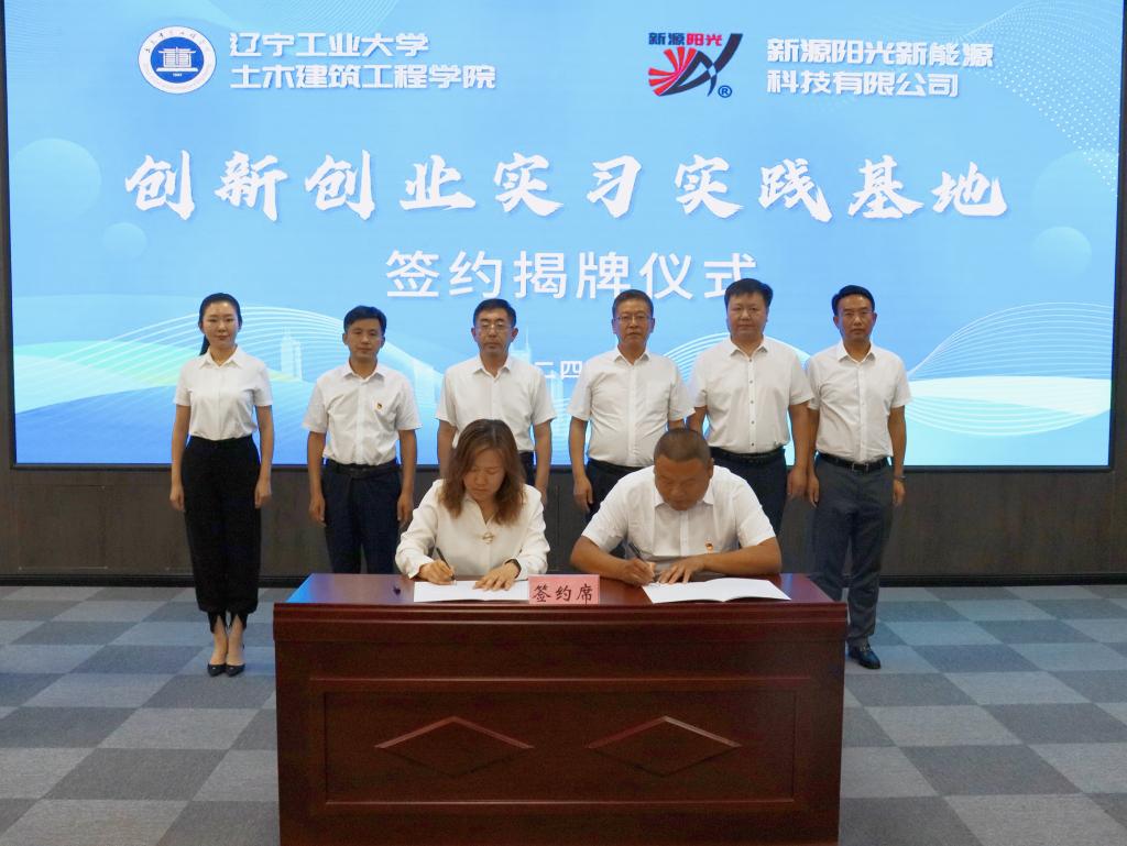 7月12日,土木建筑工程学院与锦州新源阳光新能源科技有限公司举行创新创业实习实践基地签约揭牌仪式。锦州市委组织部、锦州市科技局、太和区委相关负责人,锦州新源阳光新能源科技有限公司董事长王秋建,土木建筑工程学院院长董锦坤参加了签约揭牌仪式。