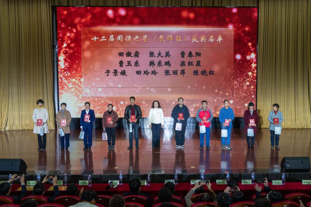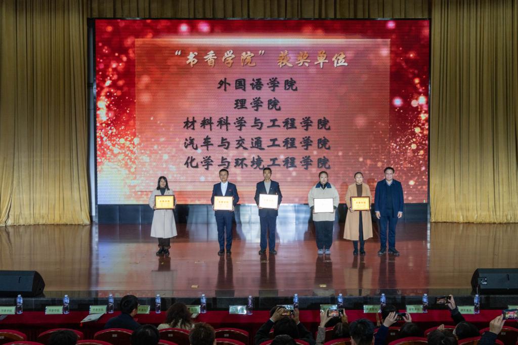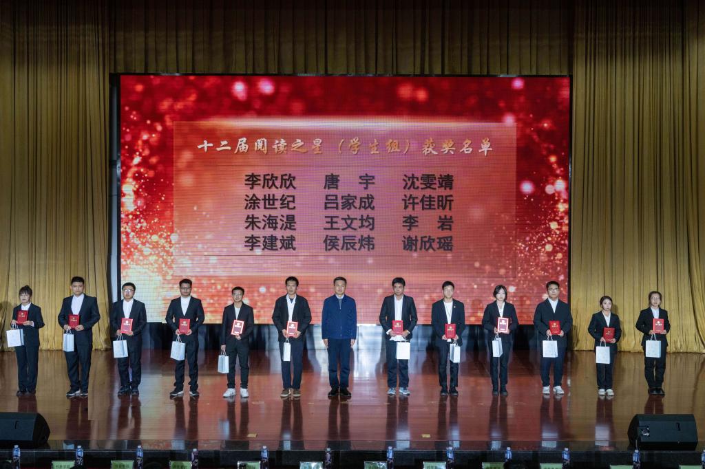 闭幕式上,对在本次读书节表现突出的团体和个人进行了表彰,与会领导分别为获奖师生颁奖。外国语学院、理学院、材料科学与工程学院、汽车与交通工程学院、化学与环境工程学院5个单位荣获“书香学院”;田傲霜、张大英、曹春阳等10名教师荣获第十二届教师组“阅读之星”荣誉称号;李欣欣、唐宇、沈雯靖等10名同学荣获第十二届学生组“阅读之星”荣誉称号;李冰、王军璇等5名同学荣获起点书院读书协会“优秀社团干部”荣誉称号;张杰、刘畅等10名同学荣获图书馆“优秀志愿者”荣誉称号;姚策、尹希名、符旭沂等9名同学分别荣获“颂华诞 咏青春正气”第四届辽工大朗读者大赛一、二、三等奖。