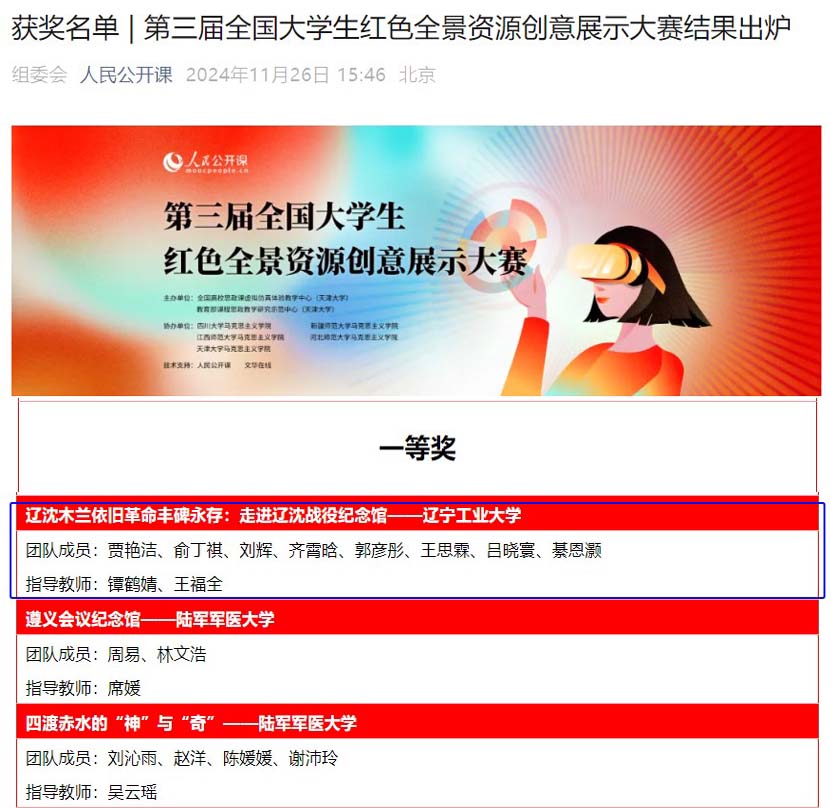 近日,第三届全国大学生红色全景资源创意展示大赛结果公布,best365马克思主义学院镡鹤婧、王福全老师指导,贾艳洁、俞丁祺、刘辉、齐霄晗、郭彦彤、王思霖、吕晓寰、綦恩灏同学共同创作的数字作品《辽沈木兰依旧 革命丰碑永存——走进辽沈战役纪念馆》荣获国家一等奖。