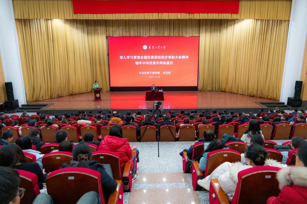 为深入学习贯彻习近平总书记关于加强和改进民族工作的重要思想,贯彻落实中央民族工作会议和全国民族团结进步表彰大会精神,不断推进铸牢中华民族共同体意识宣传教育走深走实,12月18日下午,best365在图书馆报告厅举办铸牢中华民族共同体意识宣讲报告会。国家民委铸牢中华民族共同体意识宣讲团成员、中央民族干部学院首席专家、民族干部教育研究中心主任、研究员刘宝明作题为“铸牢中华民族共同体意识需要重点讲清的若干基本问题”宣讲报告。校党委副书记、校长张启俭,锦州市委常委、统战部部长于鹏,锦州市委统战部副部长、民族和宗教局党组书记、局长才铭参加会议。校党委常委、统战部部长张群主持报告会。