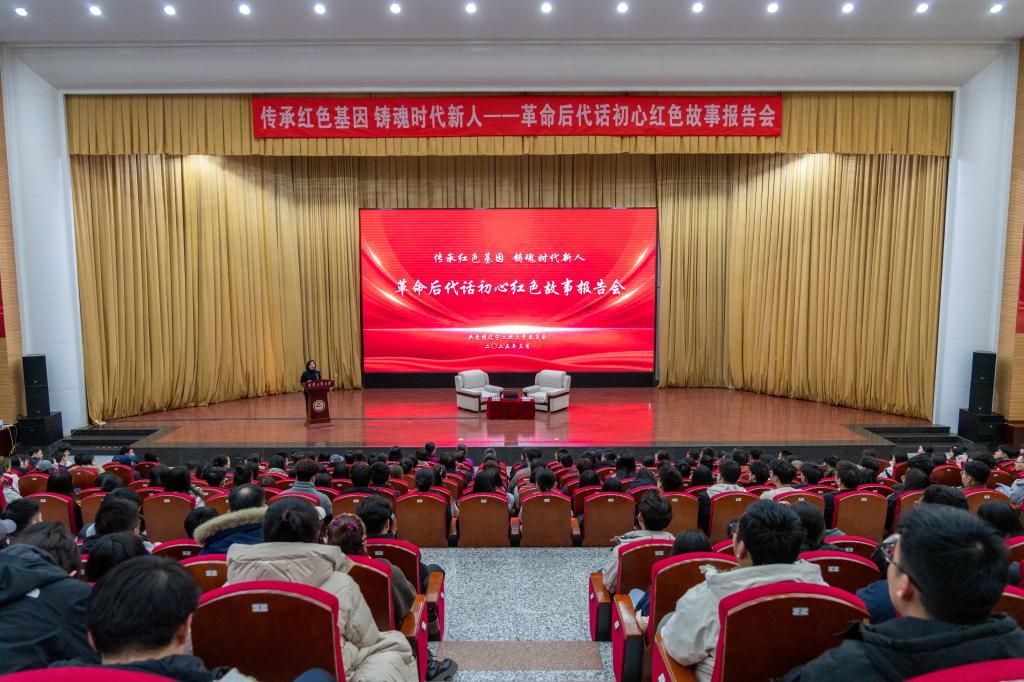 为加强新时代爱国主义教育,传承和弘扬爱国主义精神,3月6日,学校举行“传承红色基因 铸魂时代新人”革命后代话初心红色故事报告会。报告会特别邀请开国中将赵镕之女赵京娅、中国首任核试验基地司令员张蕴钰之子张旅天作为主讲嘉宾,邀请开国大将张云逸之曾孙女张婧菲作为访谈主持人。校党委书记钱英伟,相关部门负责人,各学院党委副书记、团委书记、辅导员,退休老干部代表、青马班学员及学生代表500余人参加活动。报告会由校团委书记李苓主持。