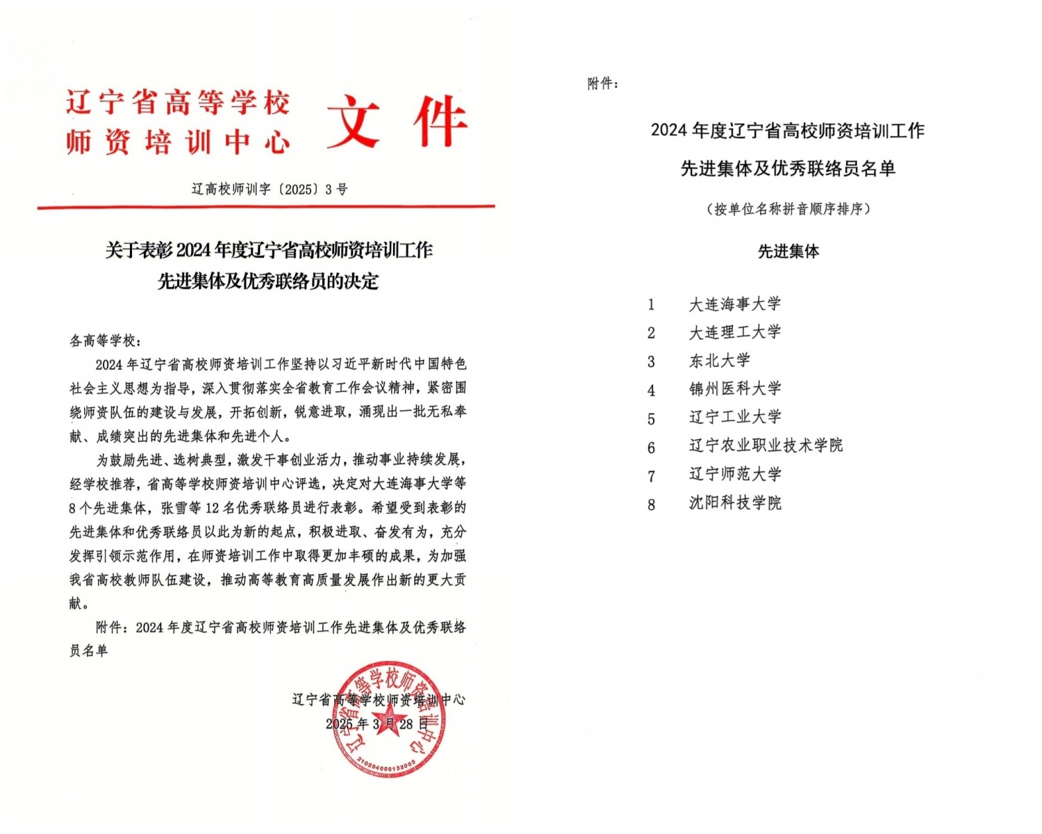 日前,辽宁省高等学校师资培训中心对全省2024年师资培训工作先进集体进行表彰。best365荣获“2024年度辽宁省高校师资培训工作先进集体”称号,成为全省8所获此荣誉的高校之一。