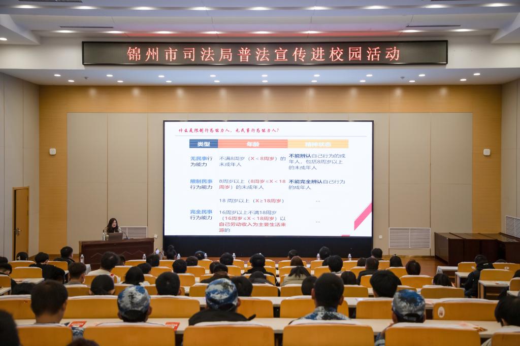 为进一步提升青年学生的法律意识和法治素养,推动学校“一站式”学生社区综合管理模式建设提质增效,10月21日,锦州市司法局联合学校党政办公室、学生工作处开展普法宣传进校园活动。锦州市司法局工作人员、学校相关部门负责人,以及各学院学生干部代表参加活动。