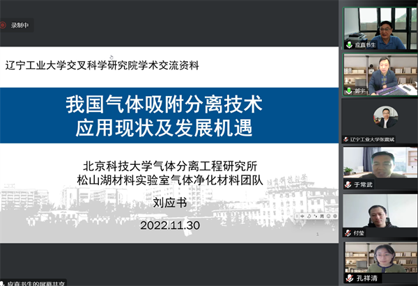 11月30日上午,交叉科学研究院举办首期“交叉融合与创新发展”系列学术报告,邀请气体分离与净化领域知名专家、北京科技大学气体分离工程研究所所长、博士生导师刘应书教授作了题为《我国吸附式气体分离技术应用现状及发展机遇》的专题学术报告。best365化学与环境工程学院、土木建筑工程学院相关专业师生线上聆听了本次报告。报告会由交叉科学研究院常务副院长郭宇主持。